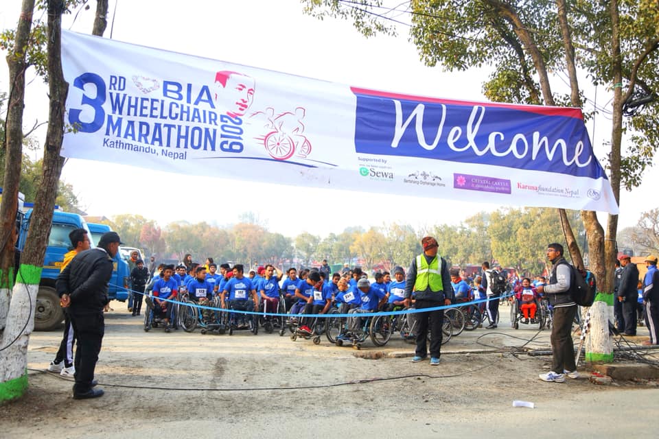 To celebrate the birthday of Founder/ President of BIA Foundation Chogyal Rinpoche, BIA Foundation organized 3rd BIA Wheelchair Marathon and Blood Donation Program in Kathmandu today. Minister for women, children and senior citizen Tham maya Thapa was the Chief Guest of the program whereas Senior Superintendent of Nepal Police Basant Kumar Pant was the Special Guest. Around 200 Wheelchair users participated this year making this event a great success.